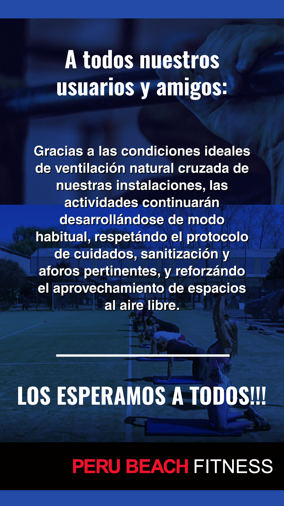 En Perú Beach Fitness estamos convencidos de que la realización regular y sistemática de actividad física ha demostrado ser una práctica sumamente beneficiosa en la prevención, desarrollo y rehabilitación de la salud, así como un medio para forjar el carácter, la disciplina, la toma de decisiones y el cumplimiento de reglas, optimizando el bienestar de quienes la practican.